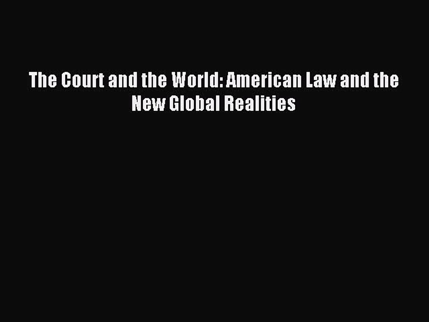 Court And The World American Law And The New Global Realities