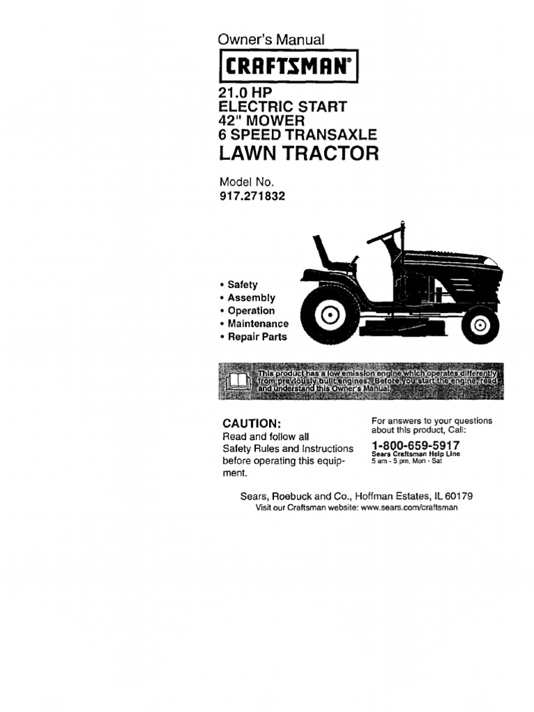 917 28671 Craftsman 24 Hp 42 Inch Automatic Lawn Tractor Owners Manual