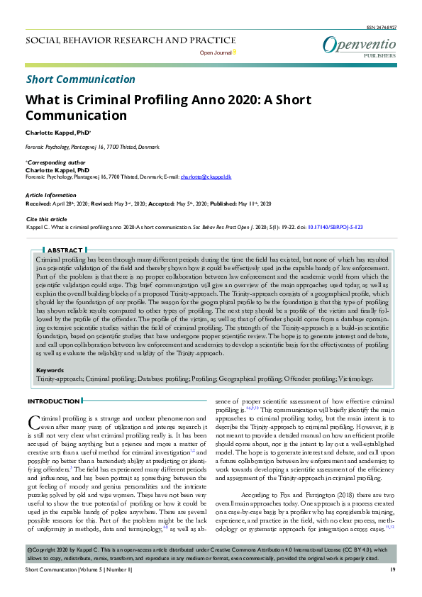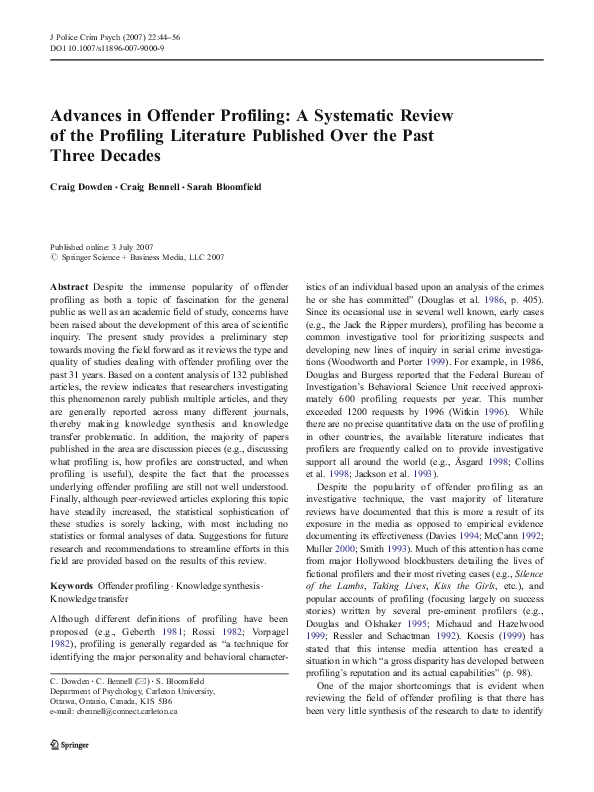 Criminal Profiling Research Papers Academia Edu