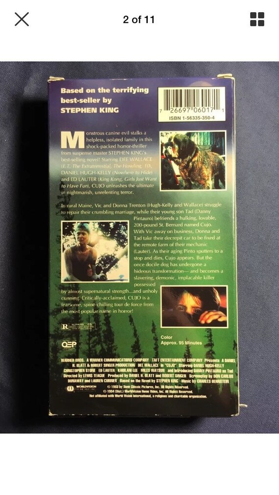 Vintage Cujo Vhs Movie 1994 Release Horror Stephen King Etsy