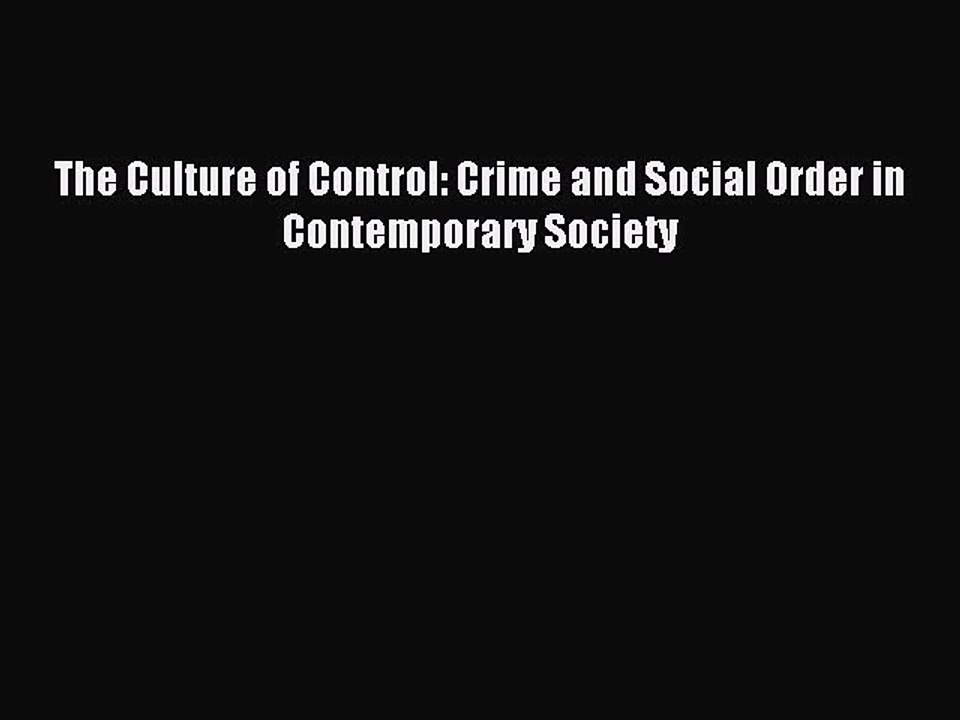 Read The Culture Of Control Crime And Social Order In Contemporary